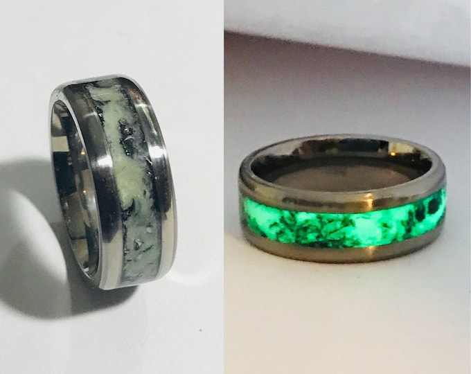 Meteorite Glow Ring with Titanium Core, Green